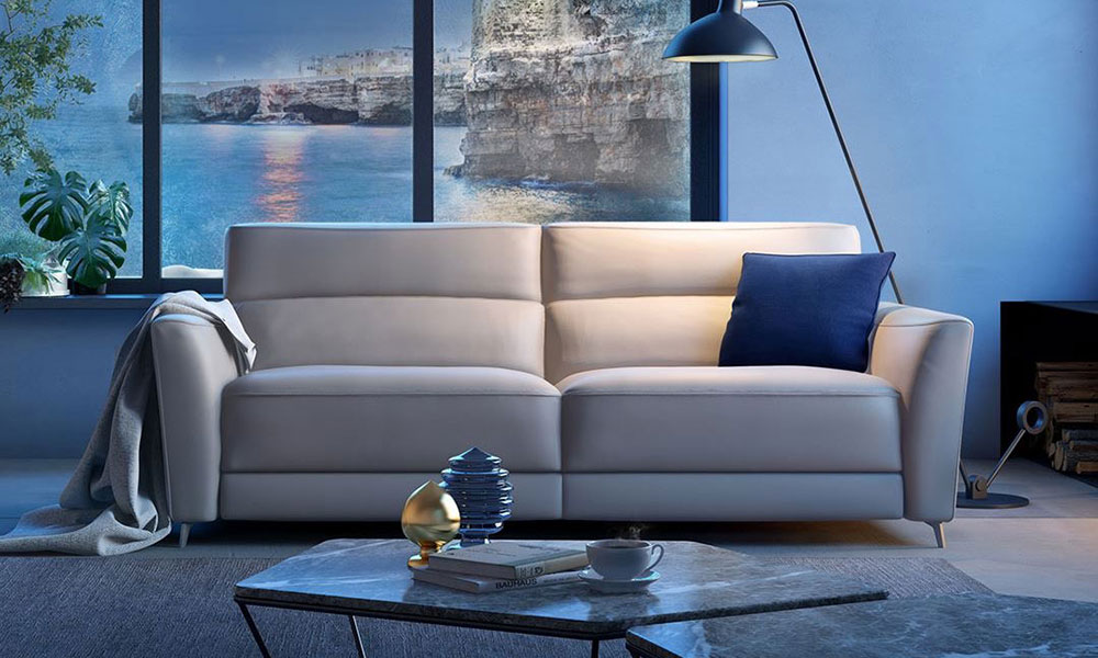 スリムなアームとステッチに縁どられたフォルムがシャープでエレガントなソファです。ランバーサポートが体をしっかりとホールド。電動リクライニング機能付きのタイプは、ヘッドレストとフットレストが個別に作動し、どのようなポジションでもフィット感が得られ、快適な座り心地を実現しました。