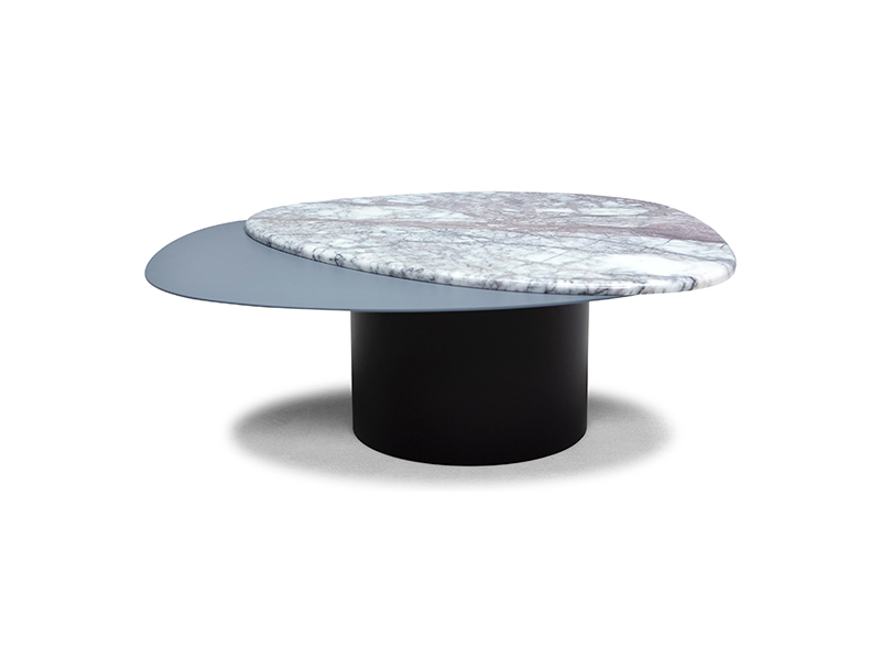 2024年ゴールド賞とarchiproducts AWARDSを受賞したMIRAIソファと曲線的な木製テーブル。アンドレア・ステイドルによるデザイン