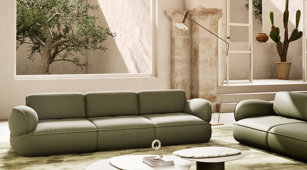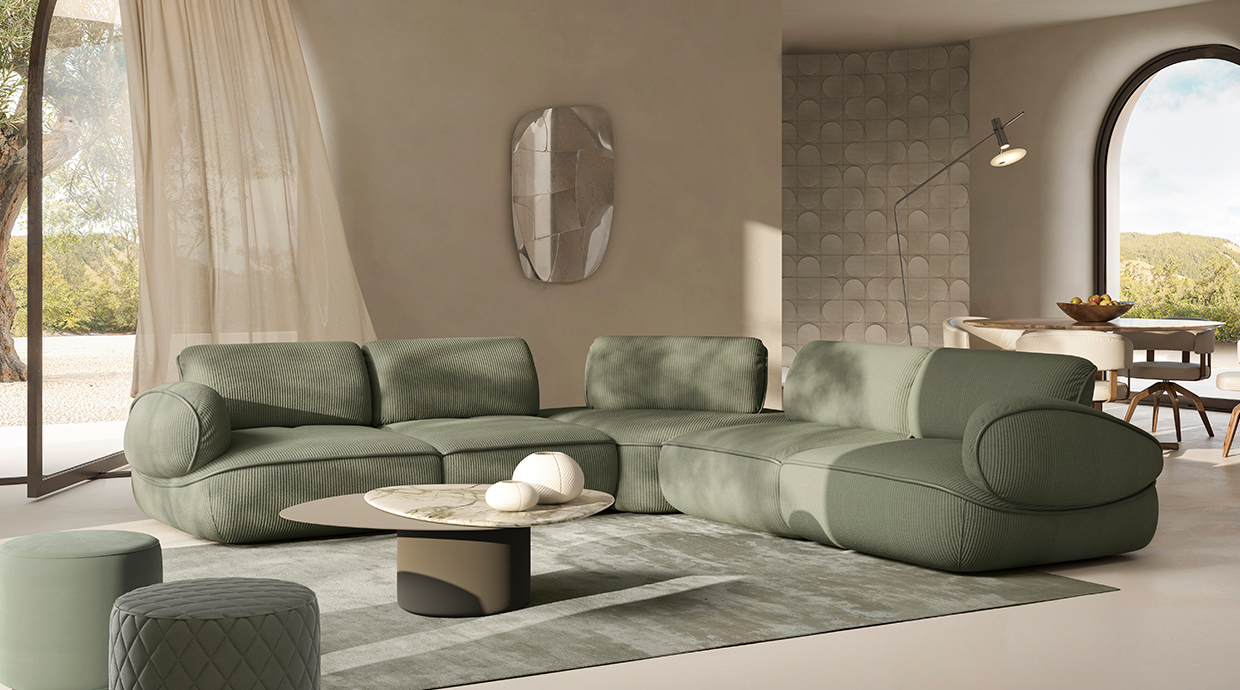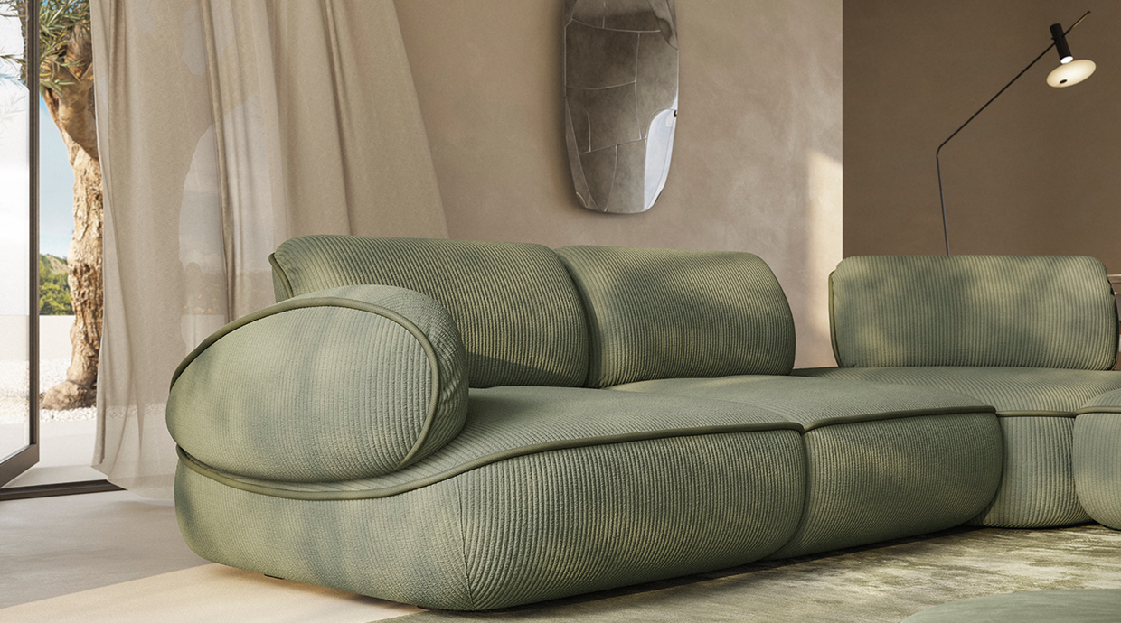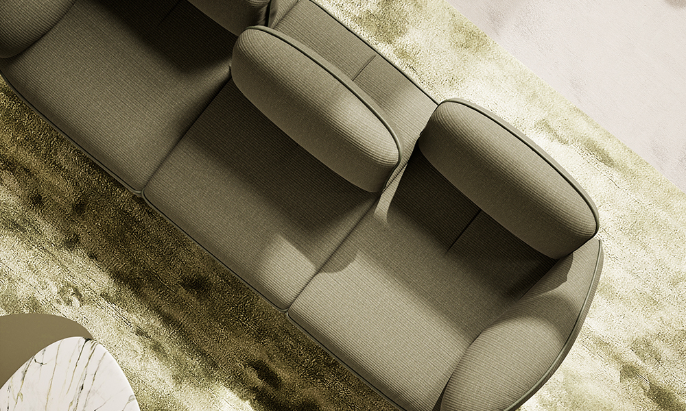 背もたれは電動スライド式で奥行きが調整可能なため、スチュエーションに合わせて快適に座れます。滑らかに動く背もたれや、全体の丸みを帯びた優美なシルエットは名前の通りカタツムリを彷彿とさせ、自然の優雅さと機能性を兼ね備えたユニークなデザインのソファです。