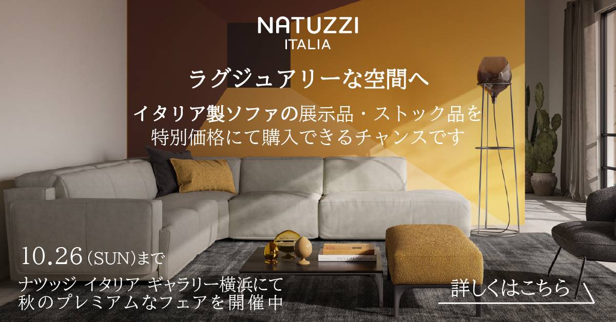 南イタリア・プーリア州の自然とアートから生まれたNATUZZI ITALIA。本フェアでは、新商品の展示と、人気モデルのクリアランスキャンペーンを同時開催。最新テクノロジーを備えたウェルネスソファから、人気モデルのレザーアイテムまで。「今、この瞬間にしか出会えない上質」を、NATUZZI ITALIA ギャラリー横浜でご体感ください。