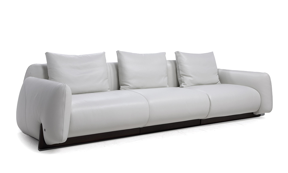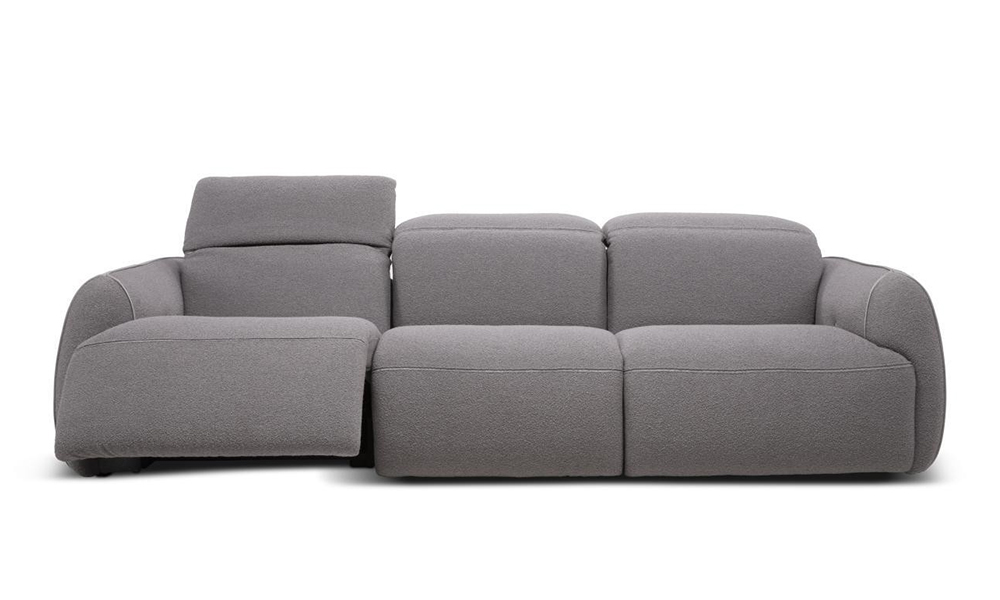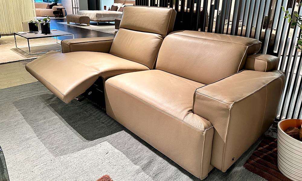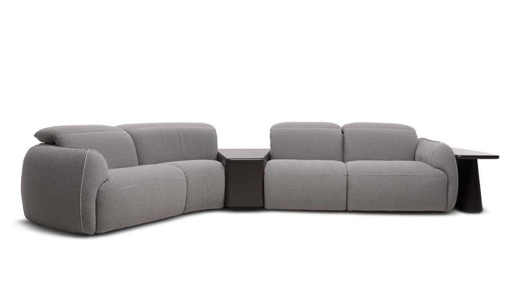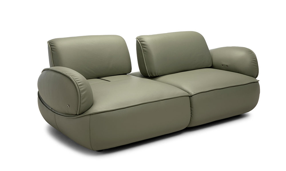 背もたれが電動でスライドし、座面奥行を最大100cmに調整可能。包み込むような曲線と優雅なパイピングが上質な空間を演出します。
