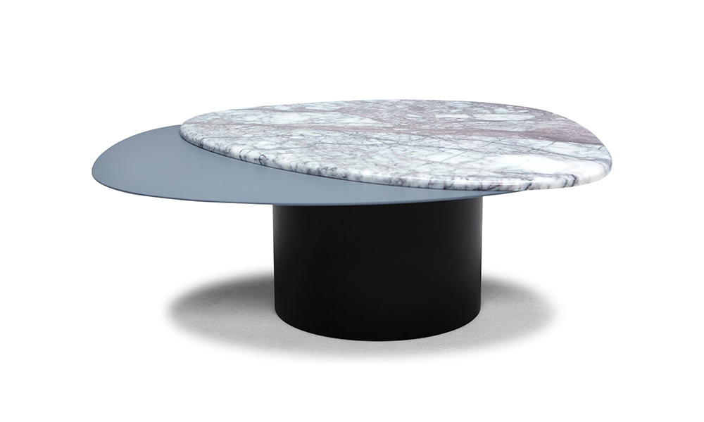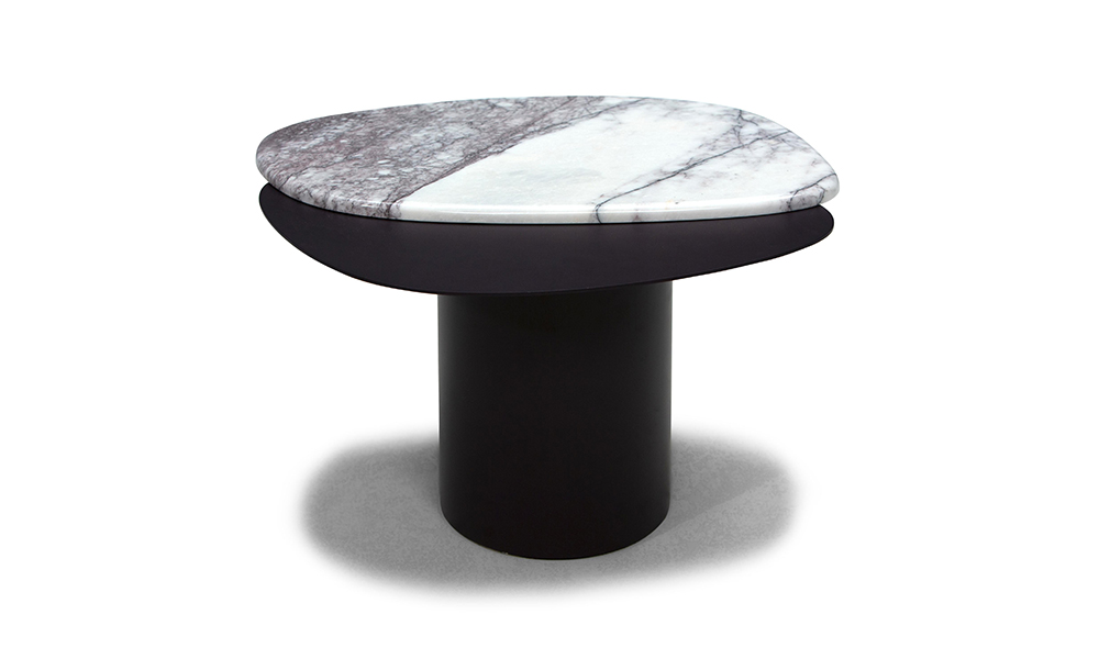 “水の流れ”をイメージした有機的フォルム。大理石とスチールが重なり、自然が生んだアートのような存在感。